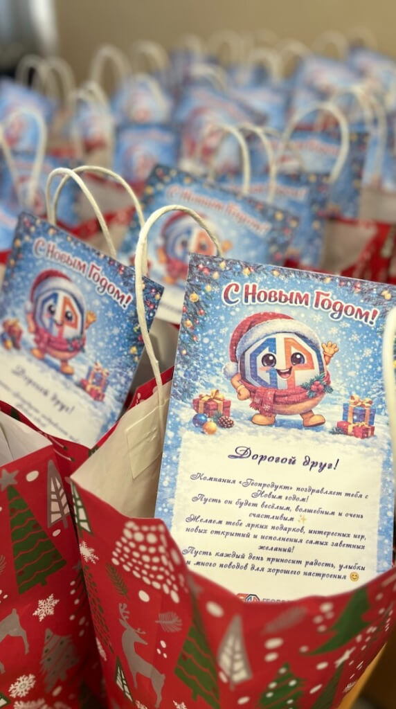 В преддверии Нового года праздничное настроение пришло не только в офисы, но и в самое сердце компании «Геопродукт» — на производственные цеха. Чтобы лично поблагодарить тех, чей труд создает наши продукты, в гости к сотрудникам производства пришли самые настоящие Дед Мороз и Снегурочка!